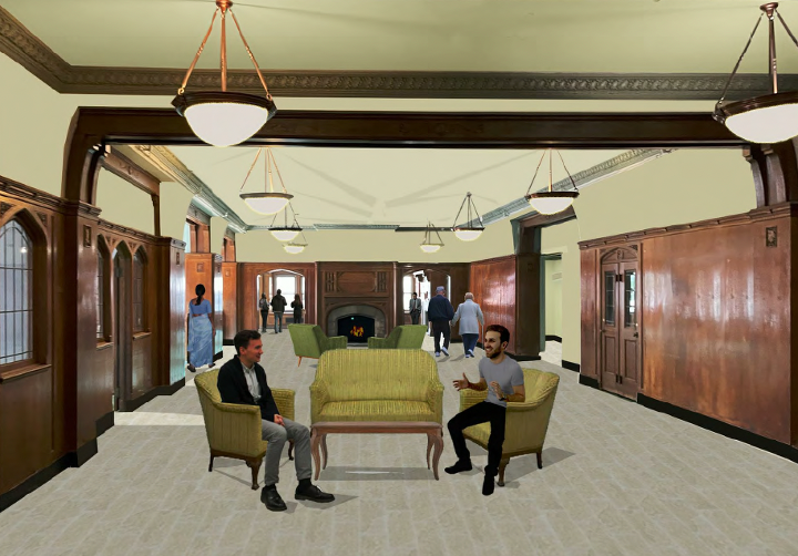 The 1922 YMCA building is listed on the National Register of Historic Places. It is representative of Jacobethan Revival and Late Gothic Revival popular in the early 20th century. The restoration will preserve many original architectural features including ornate woodwork on the first floor, stone and terrazzo flooring in the lobby, a winding stairwell, and the YMCA inscription that appears on the front façade.