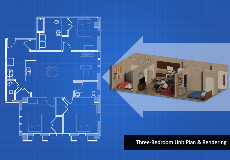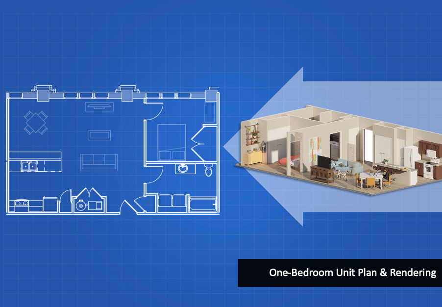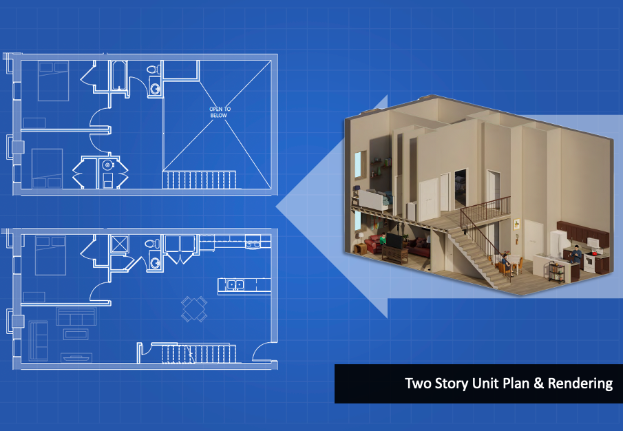 Rents for units at Lofts at 40 Long are projected at $445 for the studio, $675 to $1,260 for a one-bedroom apartment, $790 to $1,620 for a two-bedroom apartment, and $880 to $1,900 for a three-bedroom apartment depending on the income restriction. Lofts at 40 Long will offer units to qualified applicants with household incomes at a mix of incomes from 30% to 80% area median income (AMI). AMI equals the middle value when incomes are sorted from lowest to highest. Based on the current average monthly income of Franklin County, a household with four occupants making under $87k per year would qualify for a unit reserved for 80% AMI.