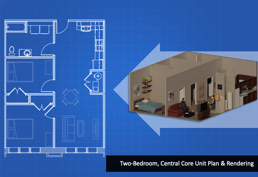 The $65.7 million redevelopment will convert the 235,118 square foot building into 121 modern housing units, including one studio apartment, 72 one-bedroom units, 38 two-bedroom units, and 10 three-bedroom units. There will be a central elevator.