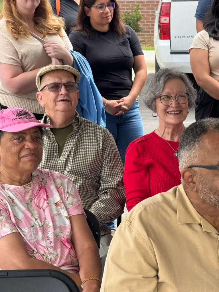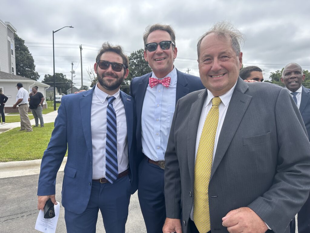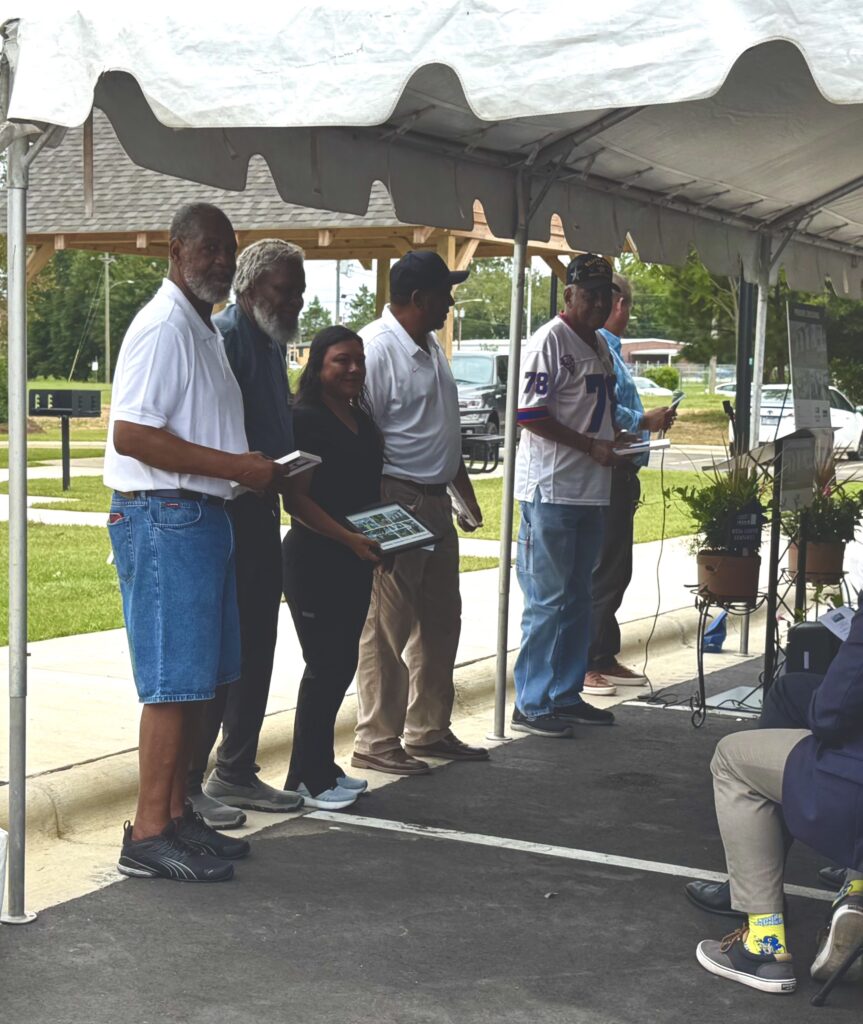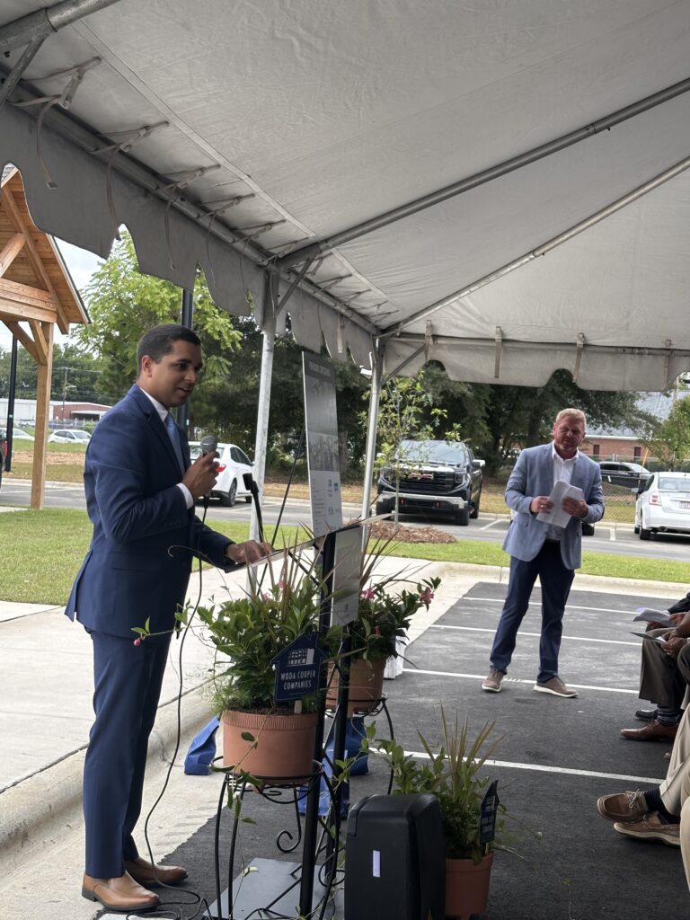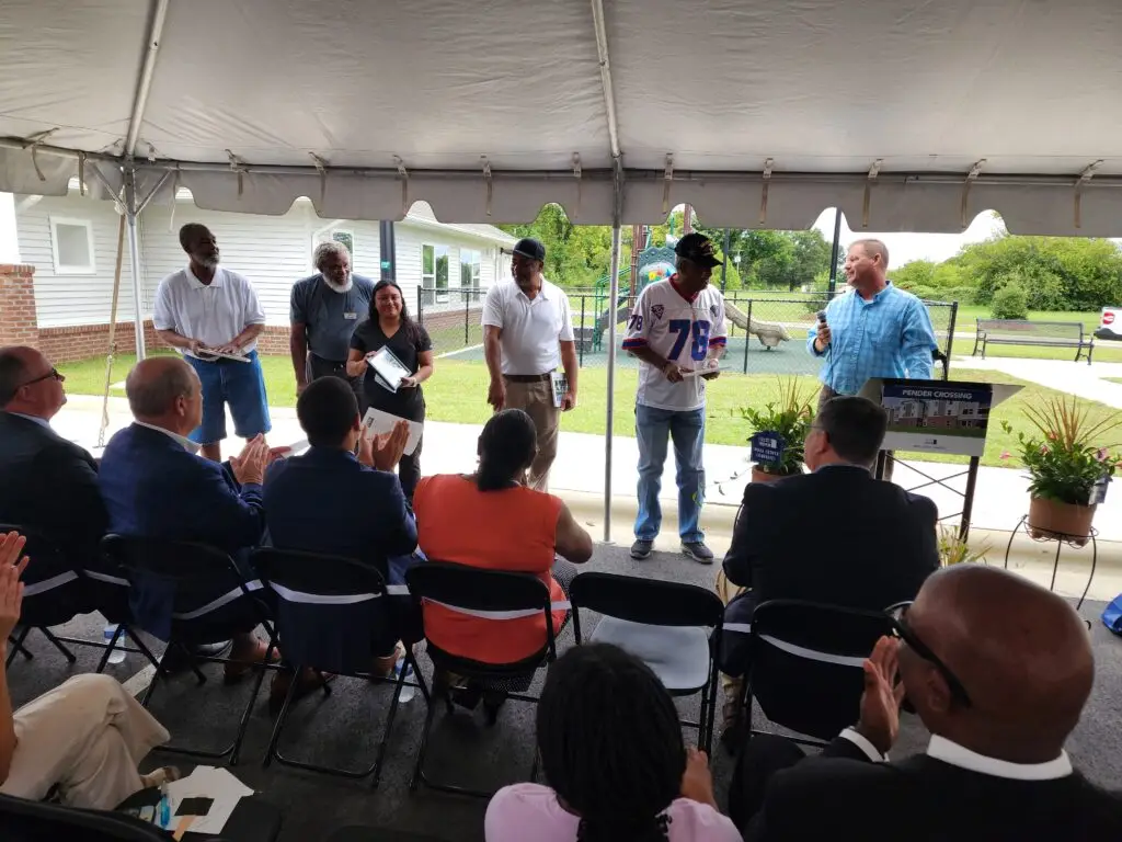 A special moment at the event was the recognition of a group of Wilson friends who met almost daily nearby to socialize and watch progress at Pender Crossing during the year it was under construction. Seth Berry, Woda Cooper Companies’ Project Manager for Pender Crossing, said their enthusiasm for the development was encouraging to his team and helpful in establishing the site’s presence in the neighborhood. Thomas Purdie, Jerome McNair, and the third “guy” Cordain Dancy were often joined public health worker Lucy Cruz who worked with Dancy to operate a mobile public health testing unit nearby. In addition, Berry thanked the City of Wilson for its excellent efforts to support the construction process.