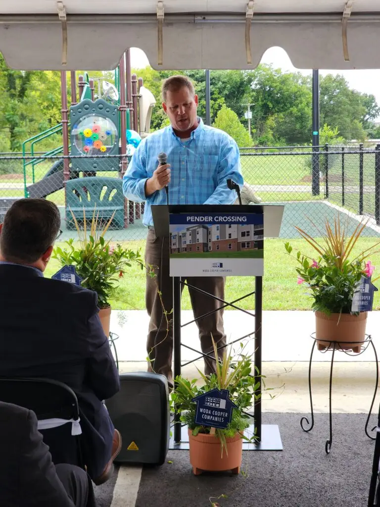 Woda Cooper Companies joined with representatives of the City of Wilson and other supporters, including representatives of the North Carolina Housing Finance Agency (NCHFA), to celebrate the opening of Pender Crossing, a 48-unit affordable apartment community for residents earning between 40% and 60% of the area median income. Pender Crossing provides 18 one-bedroom, 18 two-bedroom apartments, and 12 three-bedroom apartments, including five units with adaptations for those with mobility challenges and one unit with features for those with sight/hearing disabilities.