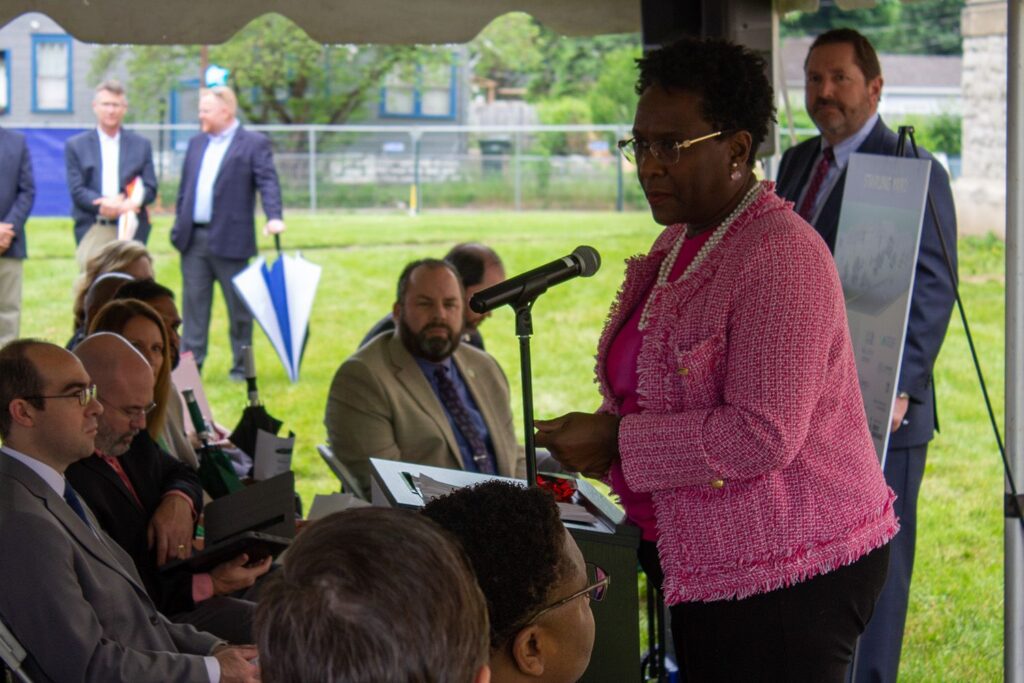 Primary financial support for Starling Yard is the result of a bond issuance and Low-Income Housing Tax Credits allocated by the Ohio Housing Finance Agency (OHFA). “The transformation of the Starling School into new affordable housing will preserve a cornerstone of the Franklinton neighborhood,” said Shawn Smith, OHFA’S Executive Director. “When this project is complete Starling Middle School will once again be a place where families will make lifelong memories and friendships will be forged. Together we are creating safe, affordable housing, which is essential to the strength of a community. OHFA is proud to be a partner on this project, and congratulates Woda and all the partners involved on the groundbreaking today.”
